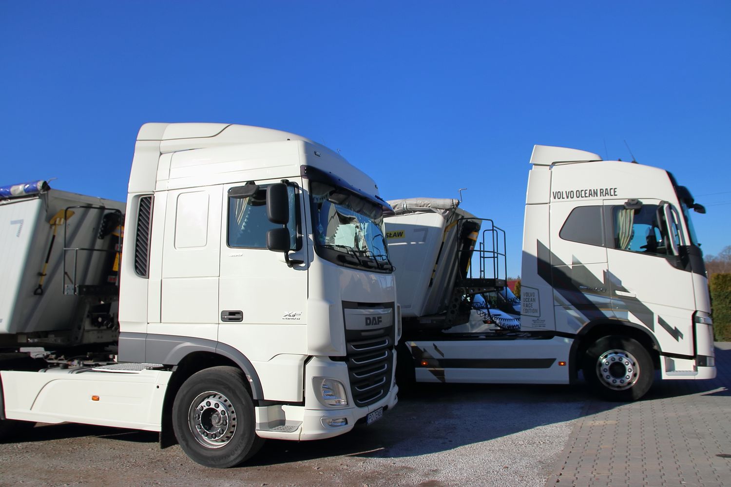Zarówno zamówienia masowe, jak i pojedyńcze usługi świadczymy ciągnikami siodłowymi z naczepami typu "wanna" z samowyładowczym systemem kiprowania. Wykonujemy zlecenia przewozu materiałów oferowanych w naszej sprzedaży, a także transport materiałów sypkich np. zboże. Pojemność skrzyni załadowczej 39 m3, tonaż 25T.